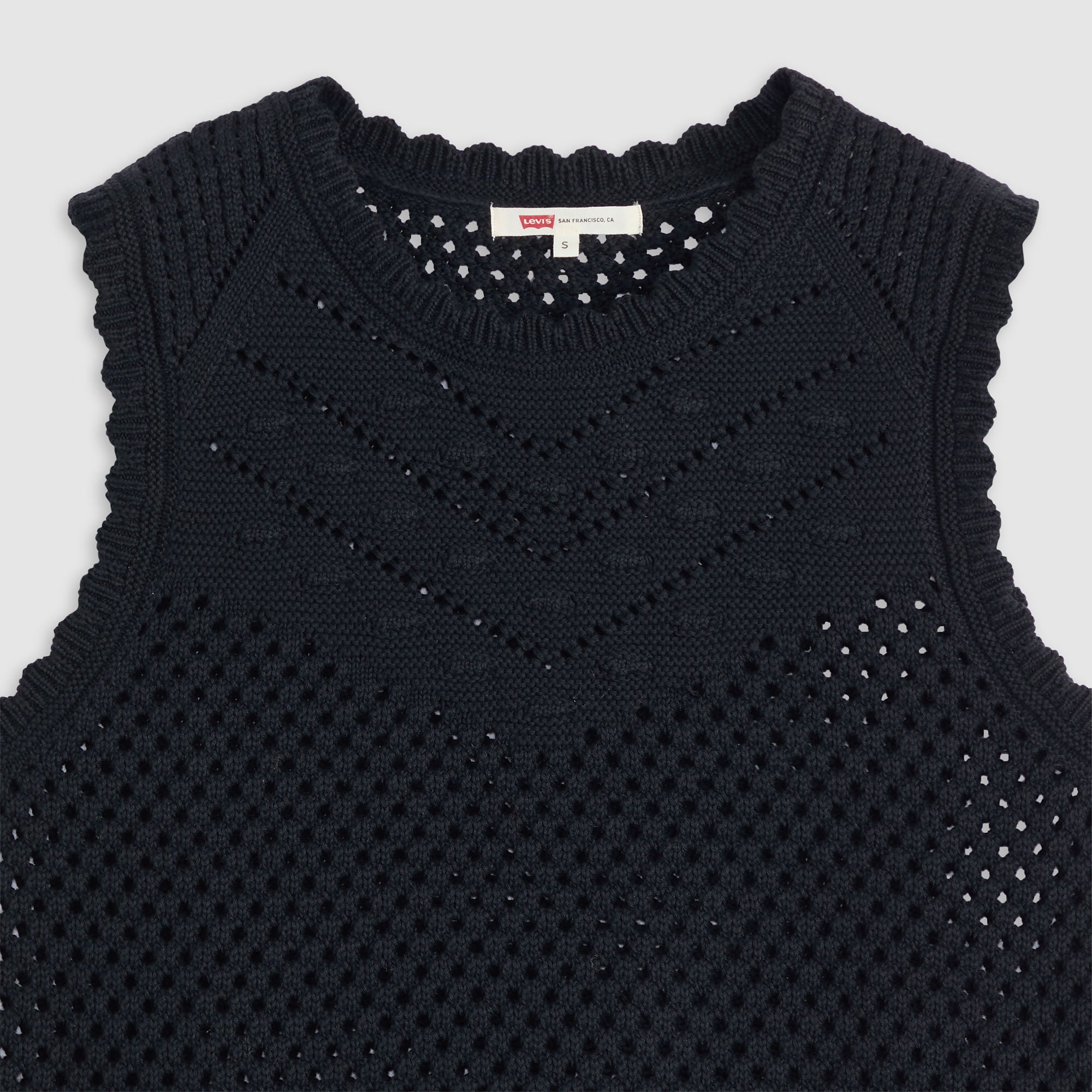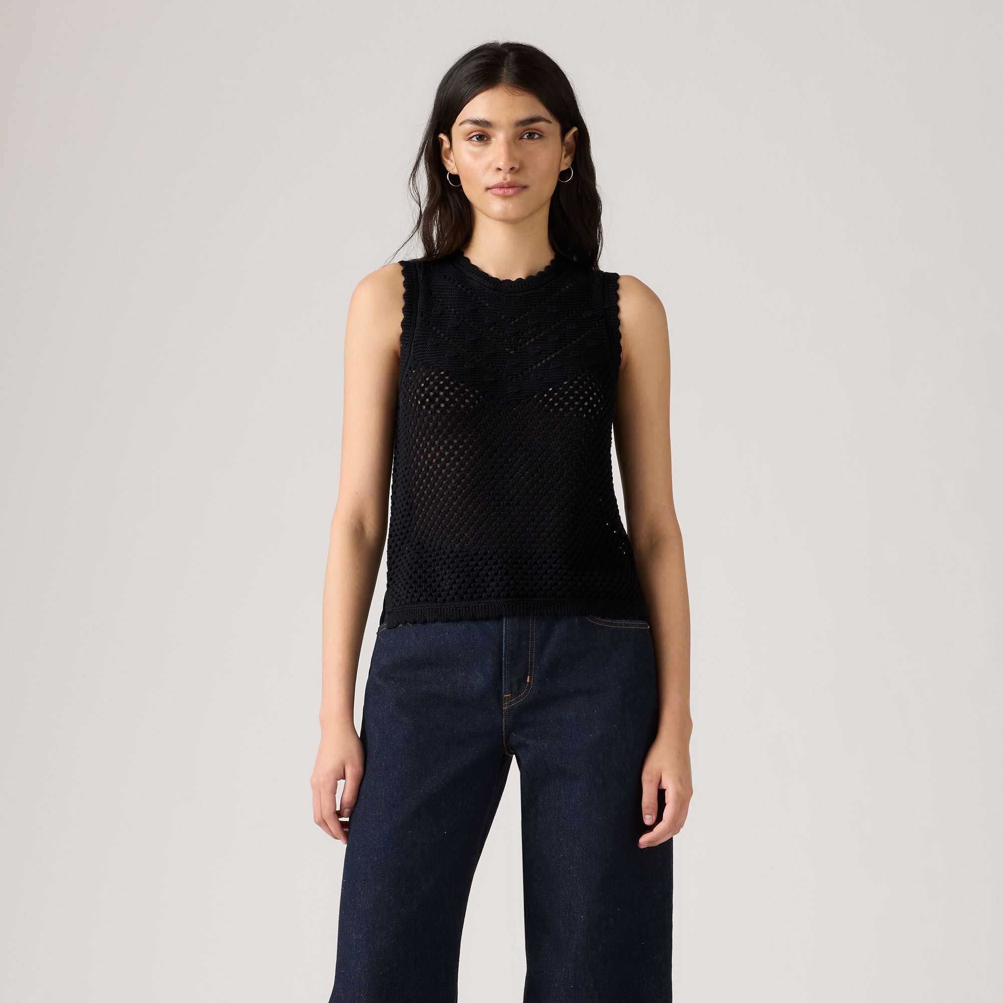 Our Adrienne Crochet Tank is both playful and easygoing thanks to its crochet-trimmed high neckline, knit design and sleeveless cut.