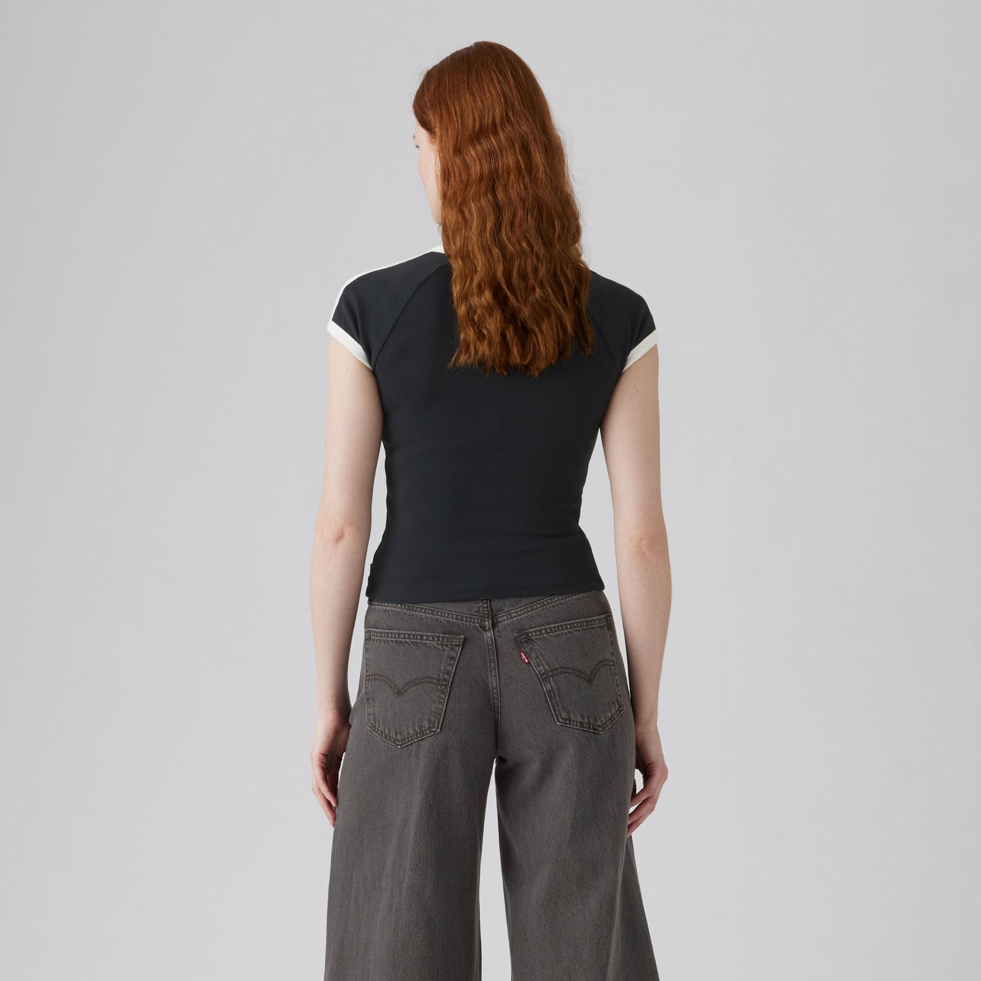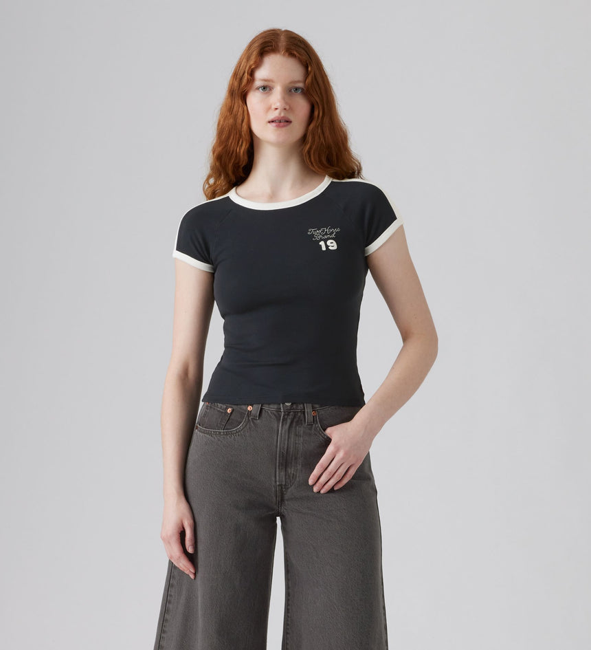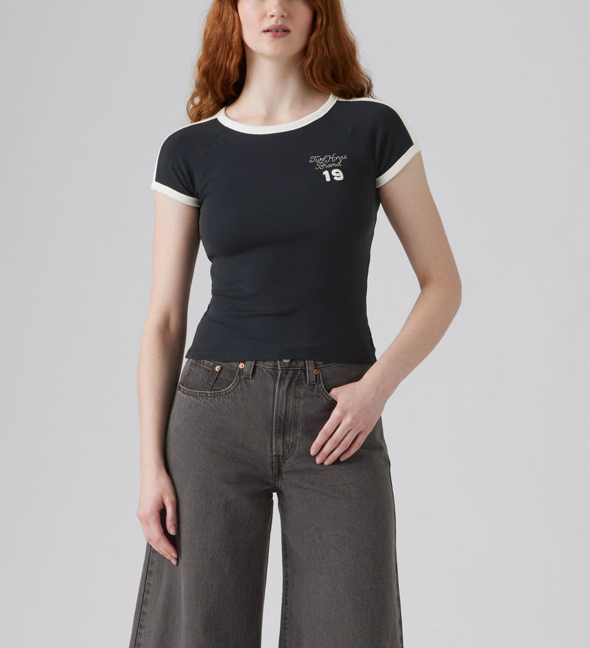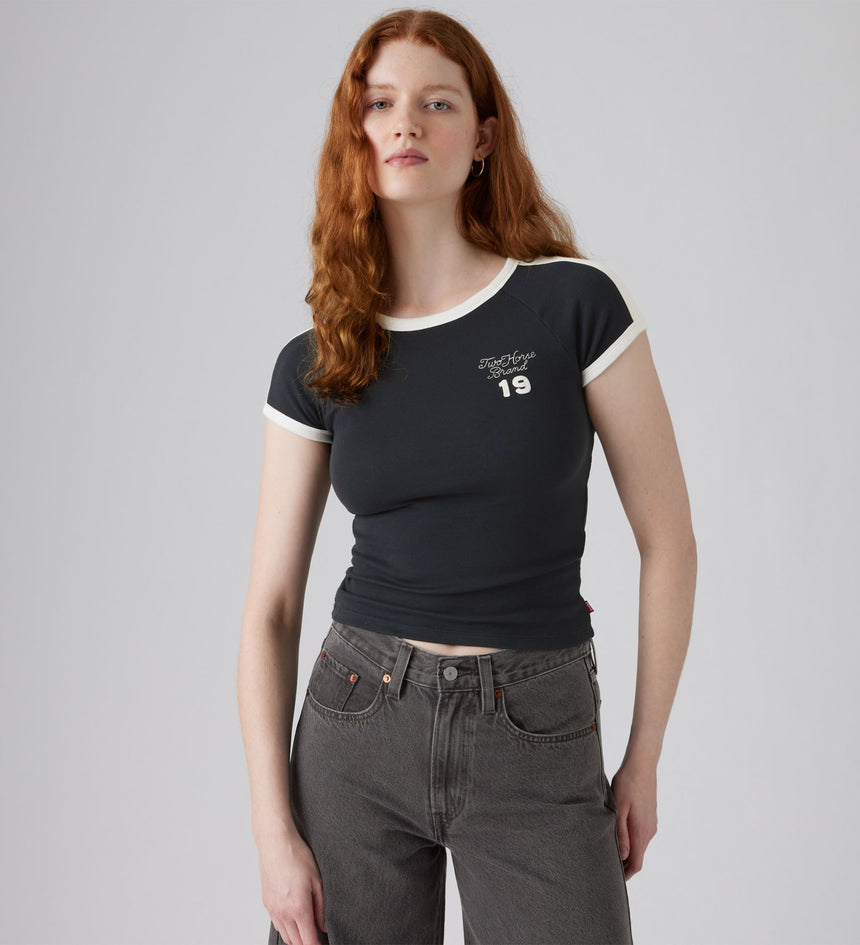 There's nothing basic about our Graphic Riley Raglan Tee. Cut with a slim fit, we designed it with easy short sleeves, a ringer design and topped it off with a one-of-a-kind Levi's® logo.