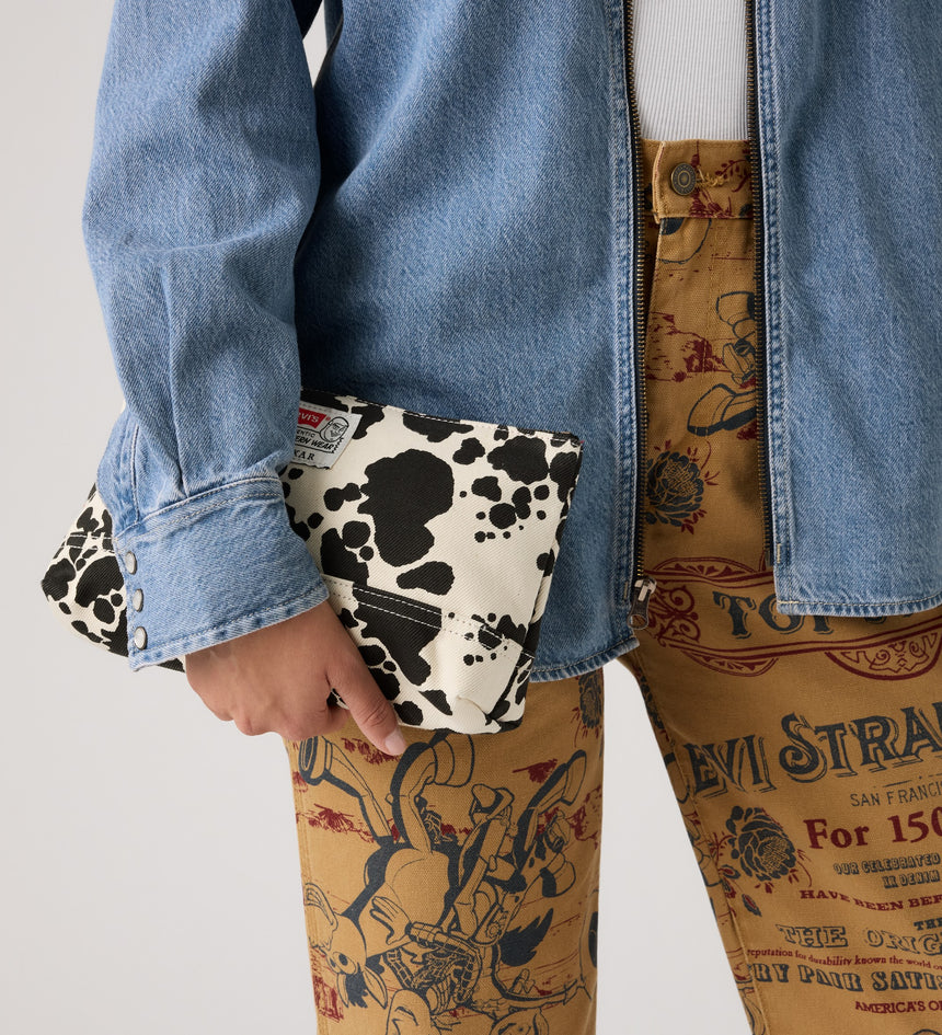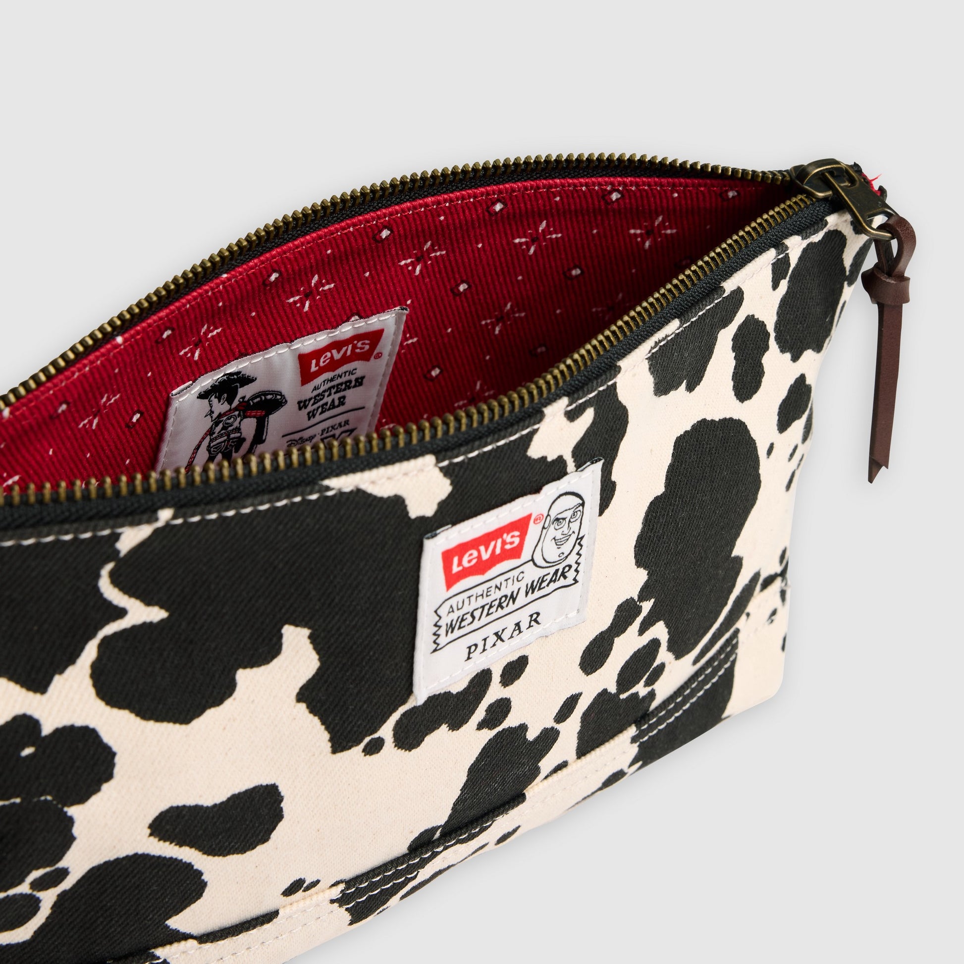 This limited-edition Cow Pouch is made with compact storage, a leather zip pull and Woody's bandana print lining. Plus, It features a randomly selected patch featuring your favorite characters.