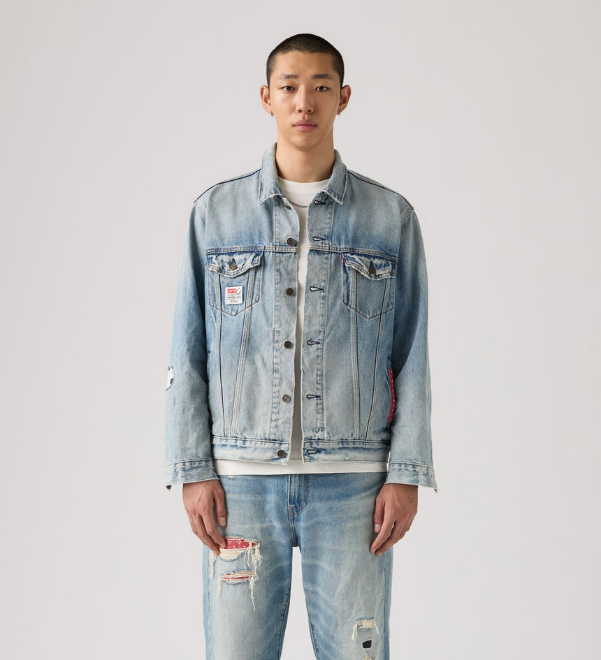 This limited-edition Type III Trucker Jacket features patch and repair detailing that uses Woody's iconic fabric patterns and a Woody Saddleman graphic complete with our iconic red tab on his jeans and the catch phrase "You've got a friend in me" printed on the back yoke.