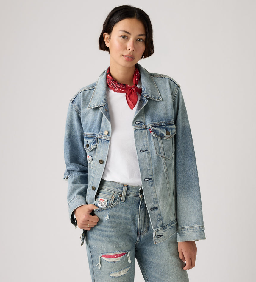 This limited-edition Type III Trucker Jacket features patch and repair detailing that uses Woody's iconic fabric patterns and a Woody Saddleman graphic complete with our iconic red tab on his jeans and the catch phrase "You've got a friend in me" printed on the back yoke.