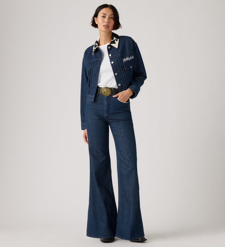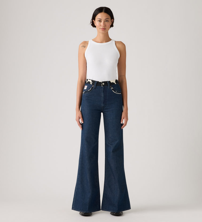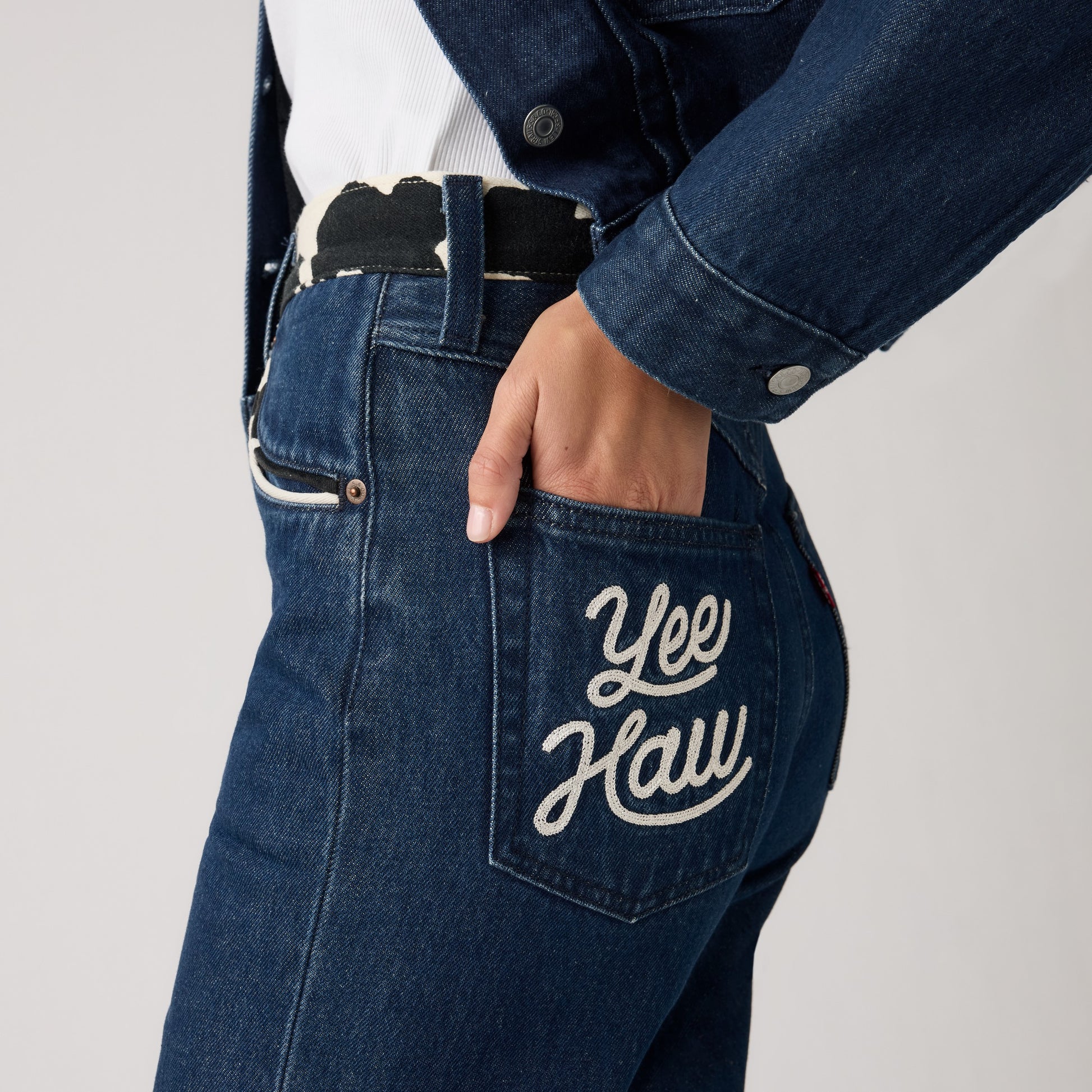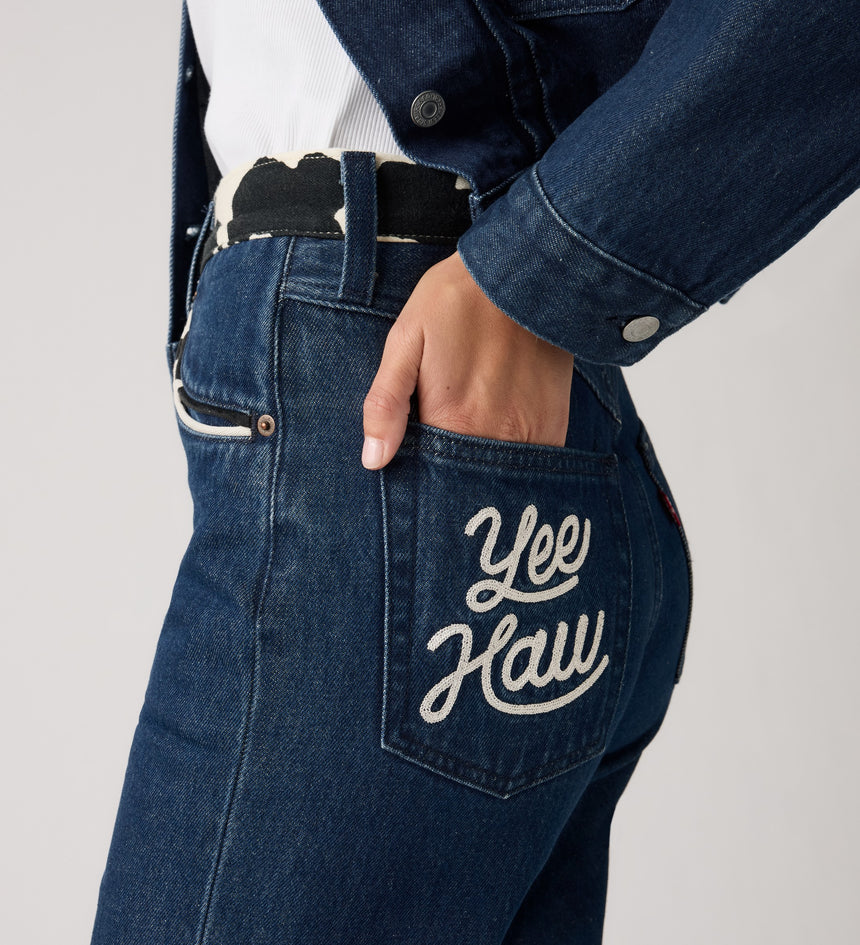 Our fan-favorite Ribcage Bell jeans get a Toy Story update with western smile pockets, a cow print waistband and "Howdy" embroidery on the back pocket. To top it off, we added Jessie branding throughout, co-branded patches and a pocket print.