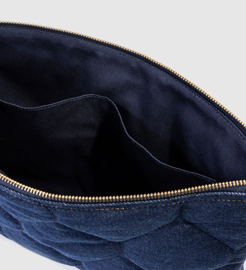 This rinsed Denim Laptop Sleeve was designed to fit up to a 15" laptop and was crafted with classic denim. Plus, it features elevated details like a leather patch and leather puller.