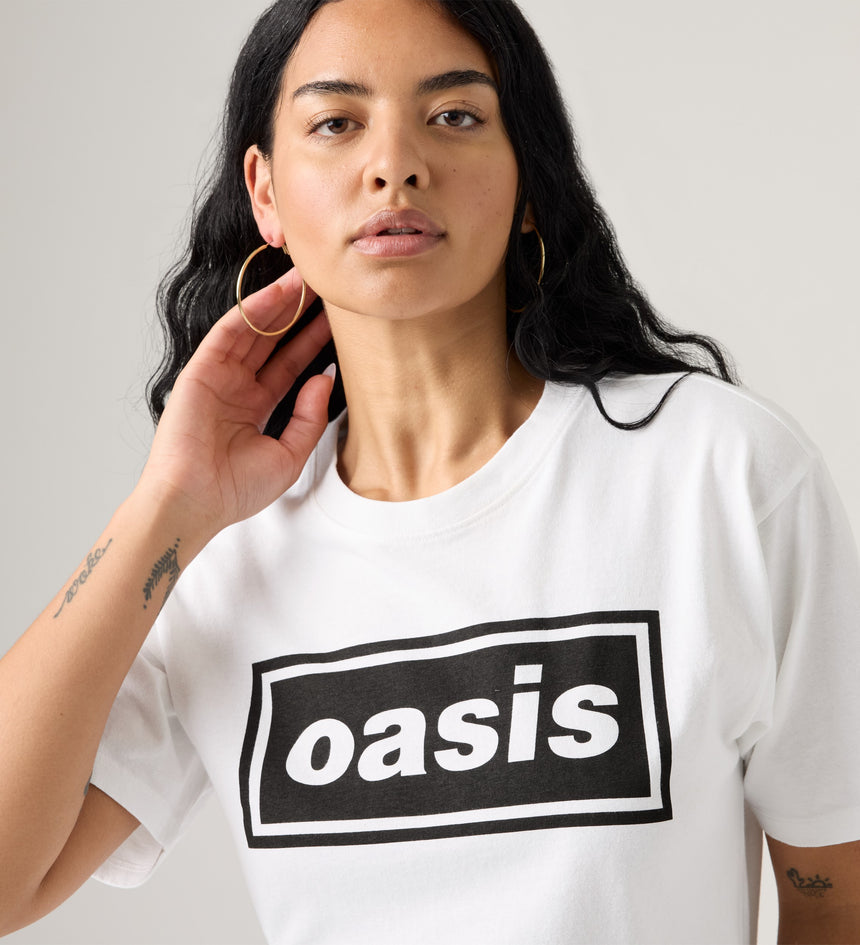 Our Band Tee was created as an homage to some of our favorite music. We made this one with a classic crew neckline, a relaxed fit and an Oasis graphic design.