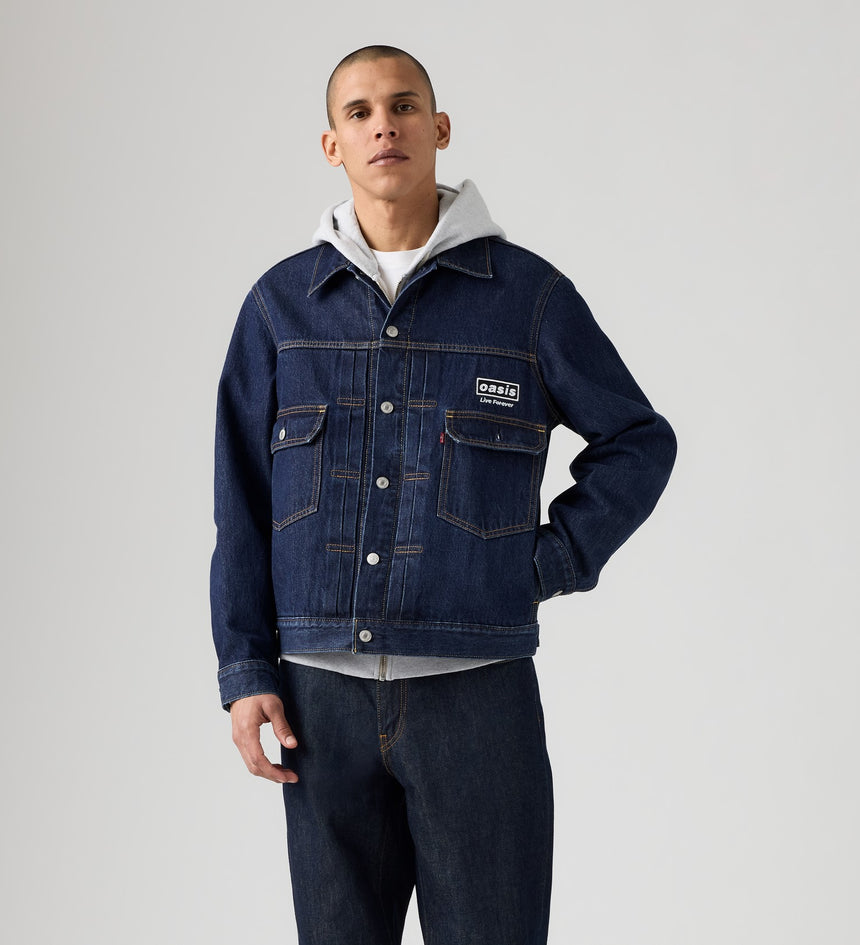 This Type II Trucker Jacket pays homage to some of our favorite music. We made it with a vintage-inspired design, pleated detailing and two flap pockets. Here we give it one of our favorite touches: a relaxed fit for easy styling.