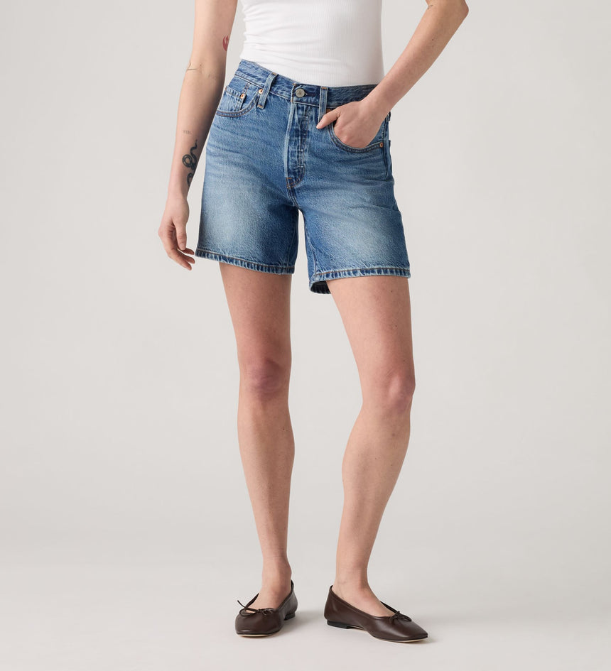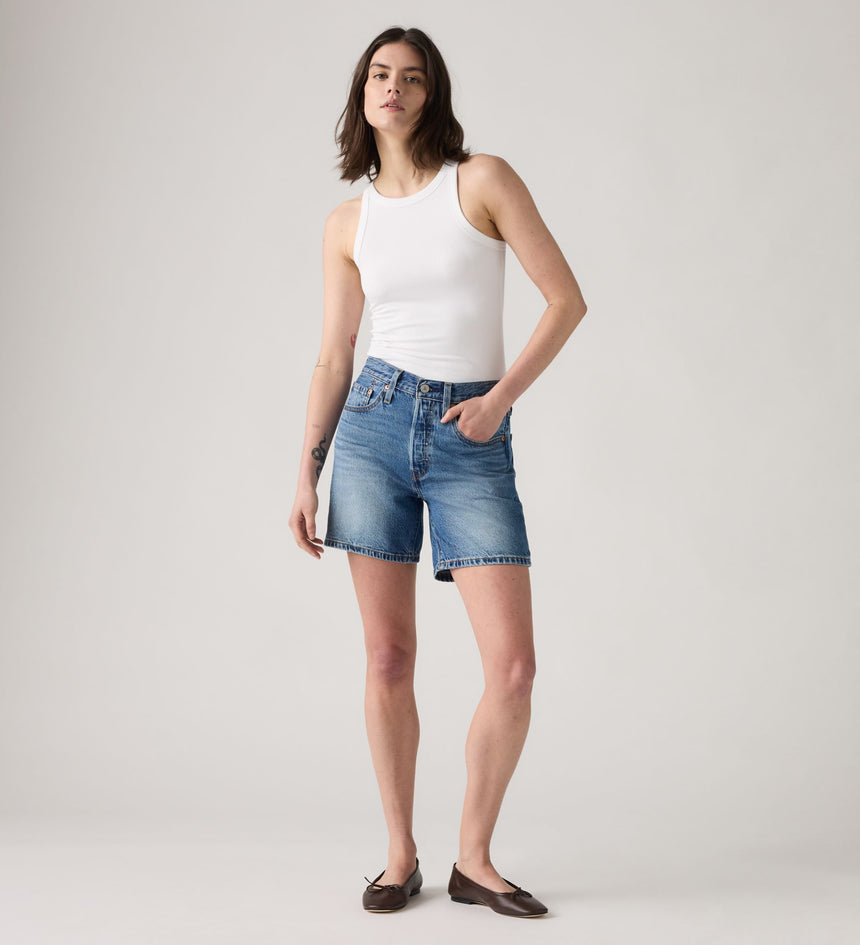 The first ever jean shorts. Modeled after the 501® Original jeans, these Mid-Thigh Shorts were made with our iconic vintage-inspired fit, a flattering high rise and a longer inseam. To this day, they’ve never gone out of style. And they never will.