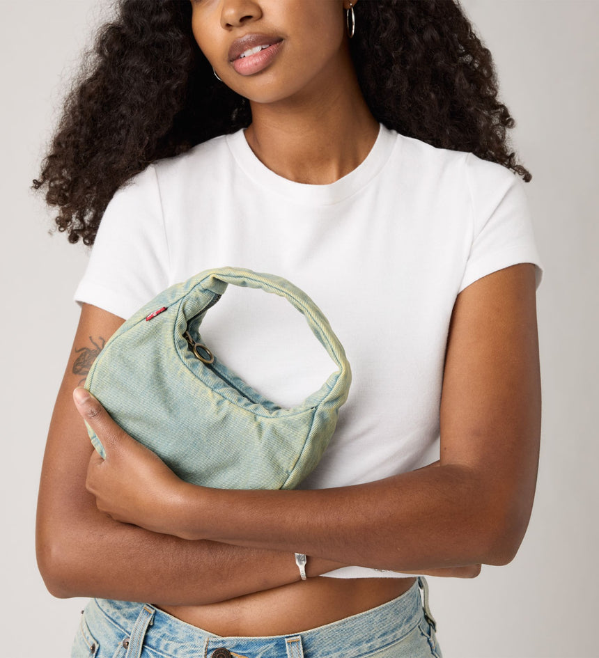 Your new go-to bag. Our Baby Brooklyn Bag features a crescent shape, a mini size and a zip closure.