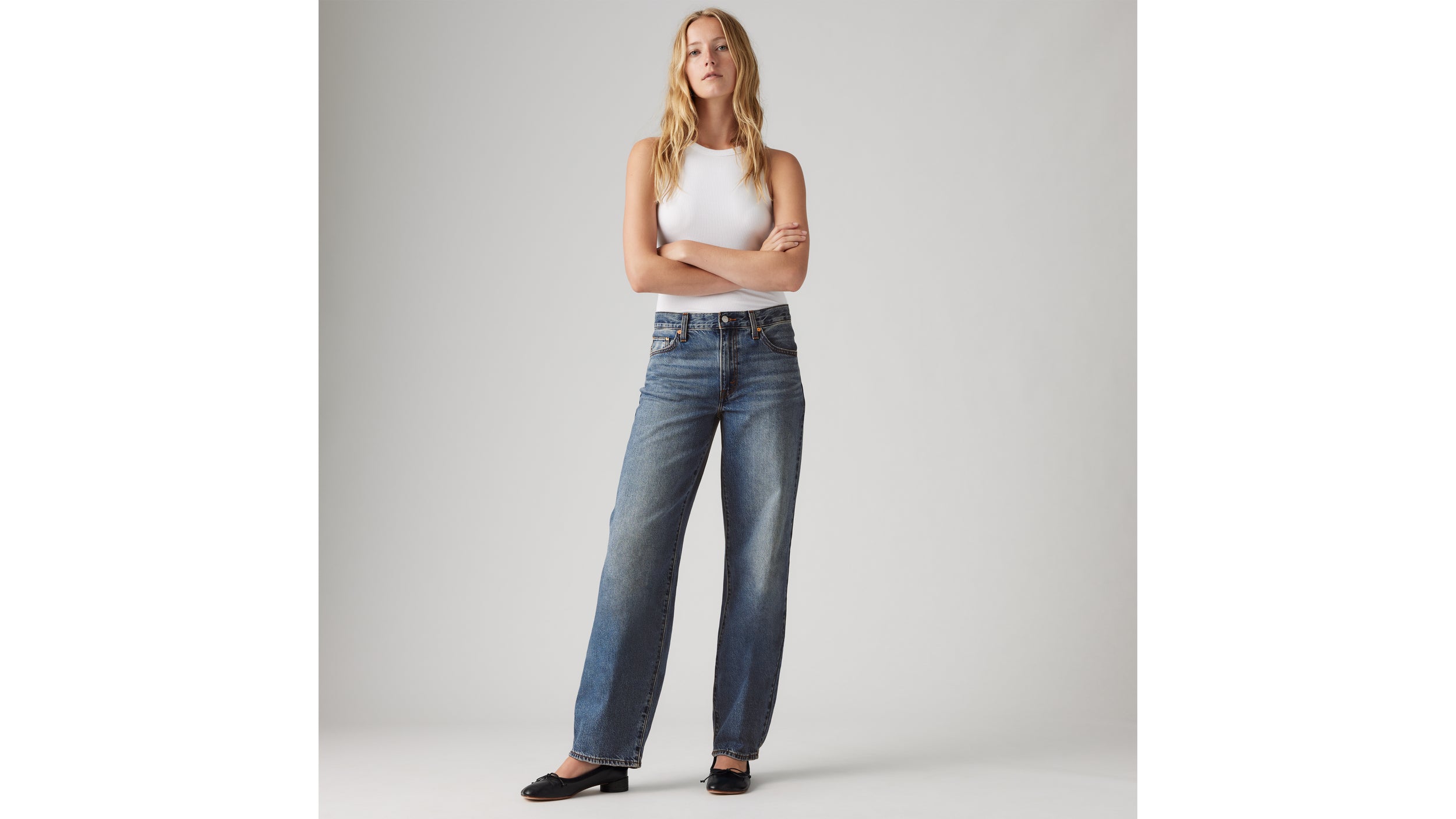 The kind of jeans you might steal from your dad's closet—but baggier. With a mid rise and straight leg, our Baggy Dad jeans are relaxed yet flattering with extra room for a subtle edge. Throw on your favorite kicks for that chill ‘90s look any day of the week.