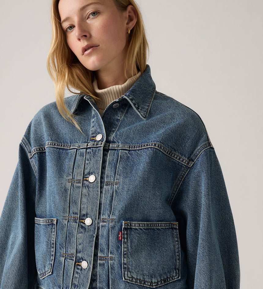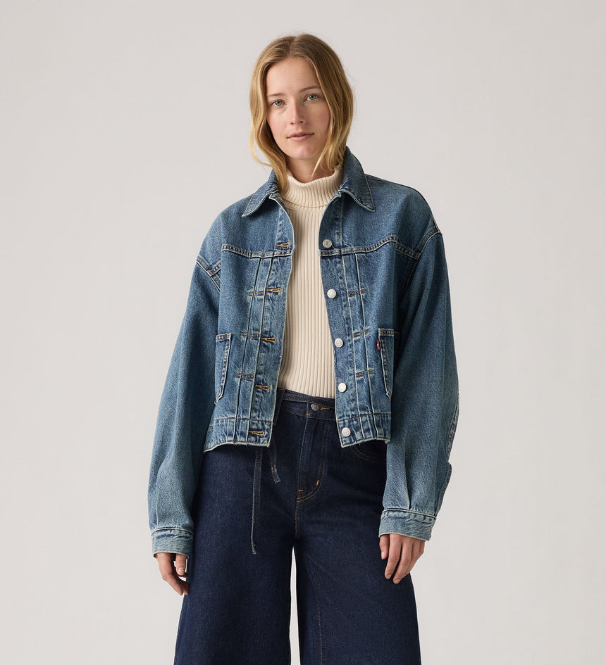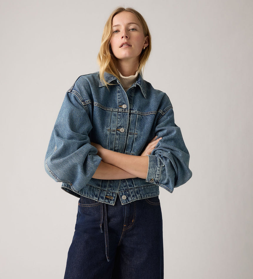 We took our iconic Trucker Jacket and gave it balloon sleeves for a vintage-inspired look and feel. This Balloon-Sleeve Trucker Jacket features a classic button-up front and a relaxed fit for keeping it easy.