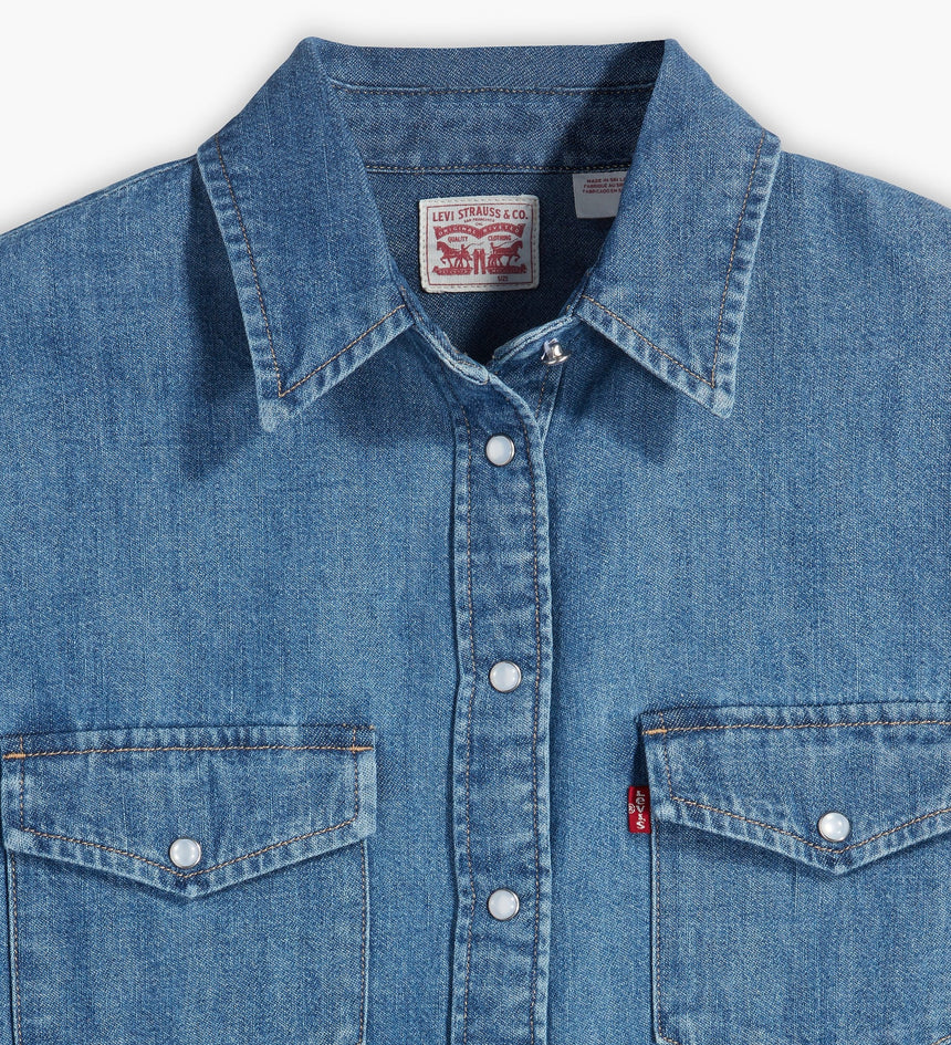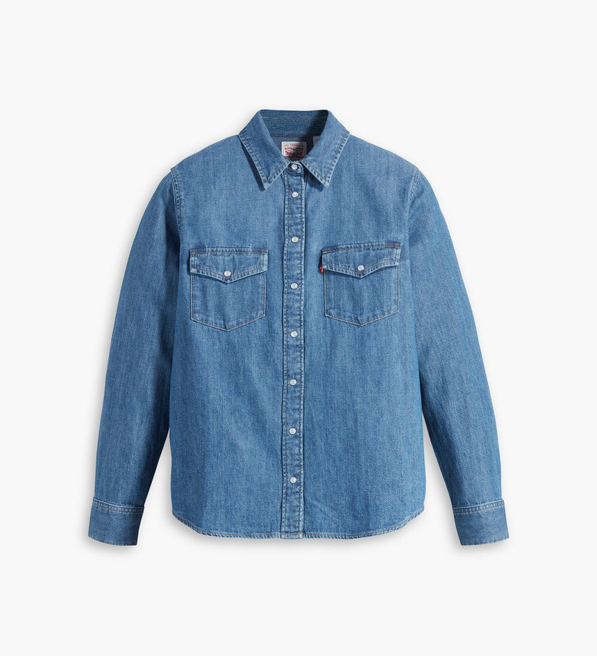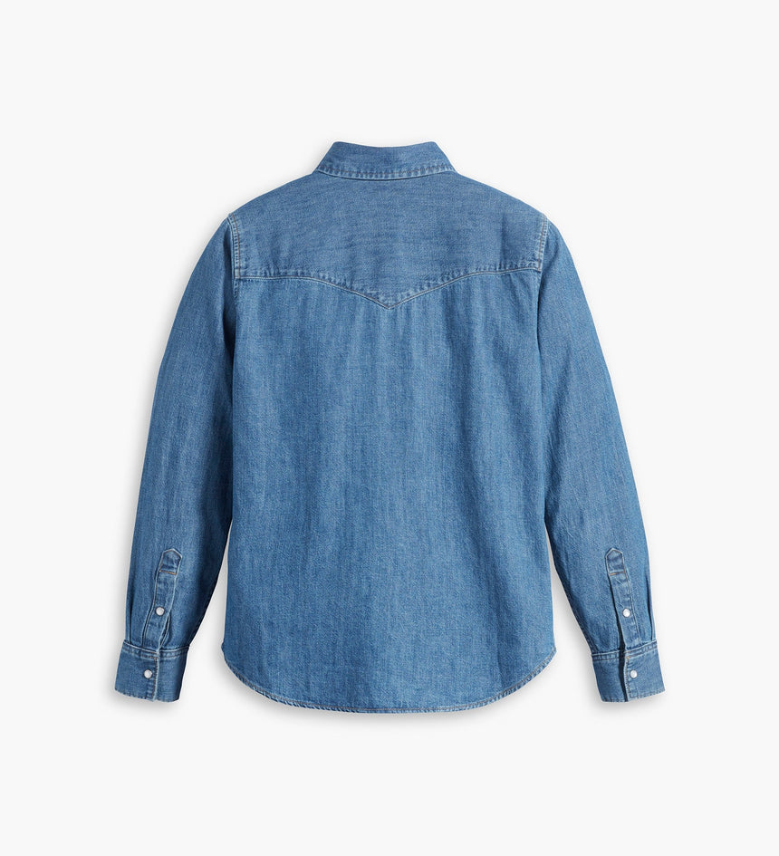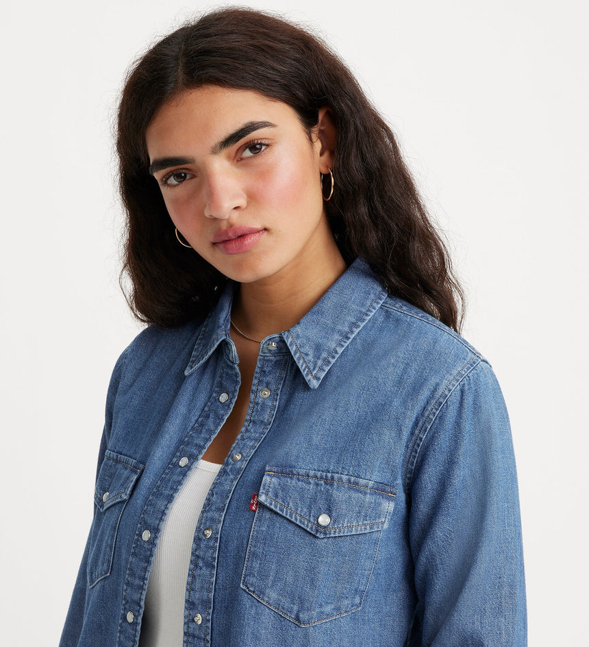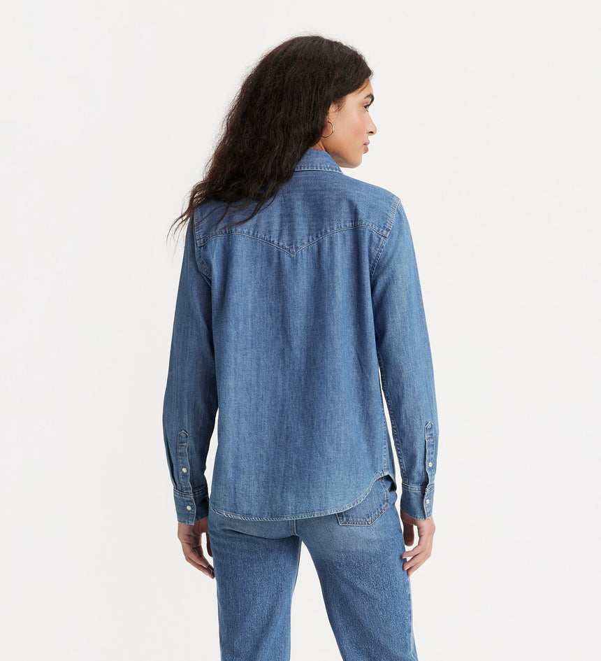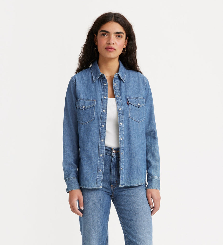 - A long-sleeve denim western shirt