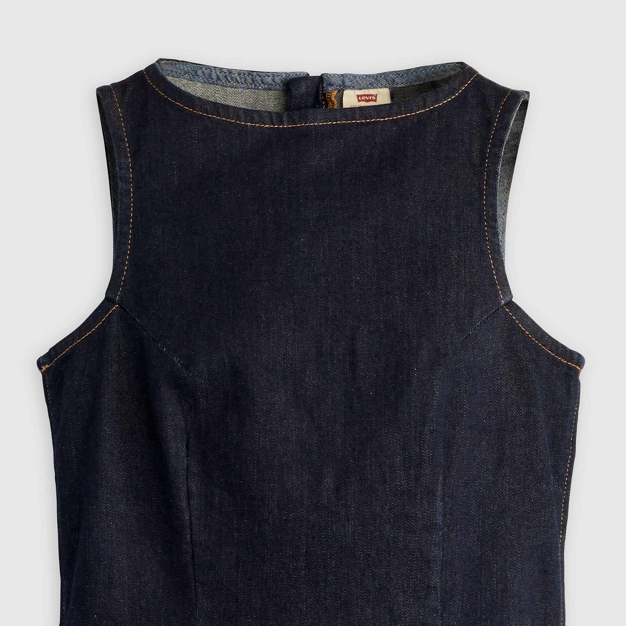 Our take on the little black dress. We made this Little Denim Dress with a flattering neckline and paired it with an easy fit with a touch of stretch.