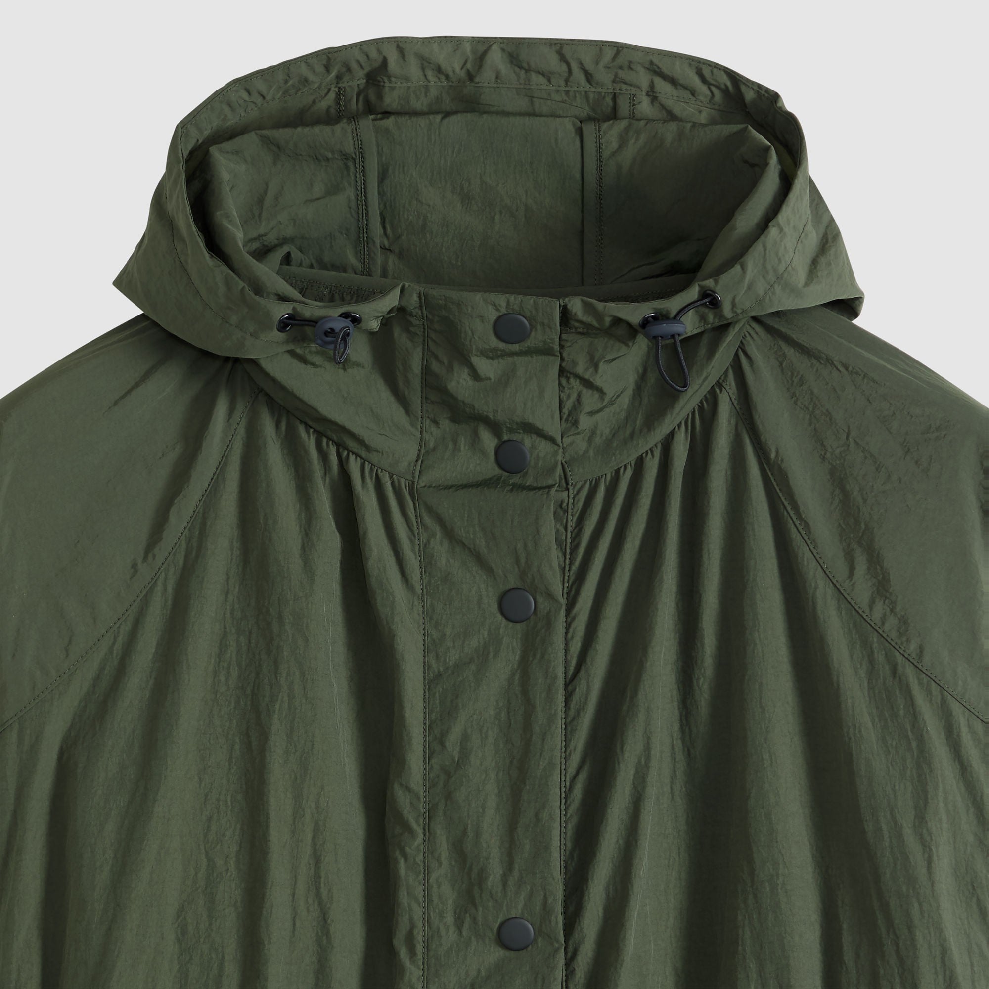 - Features a cinchable hood