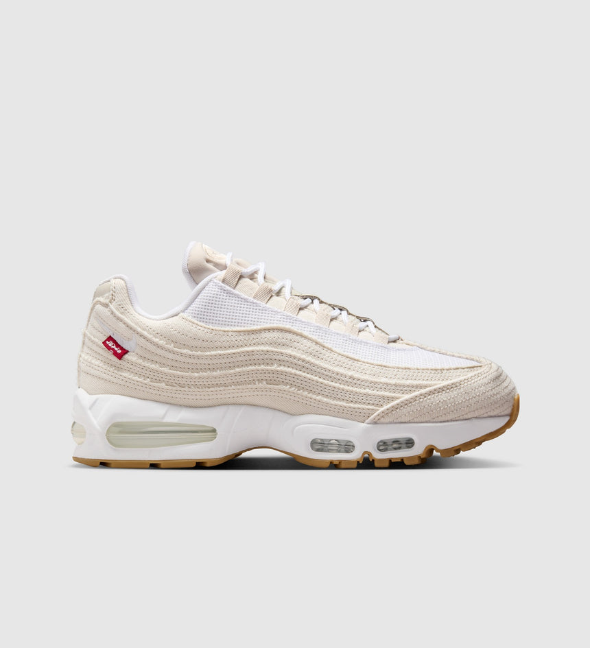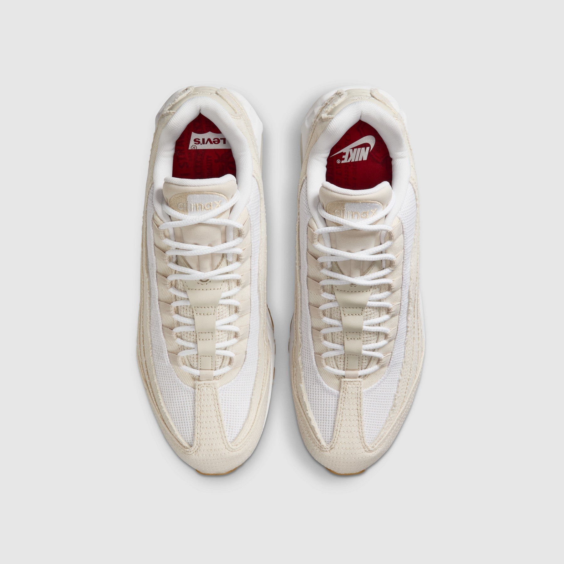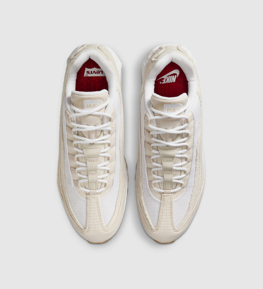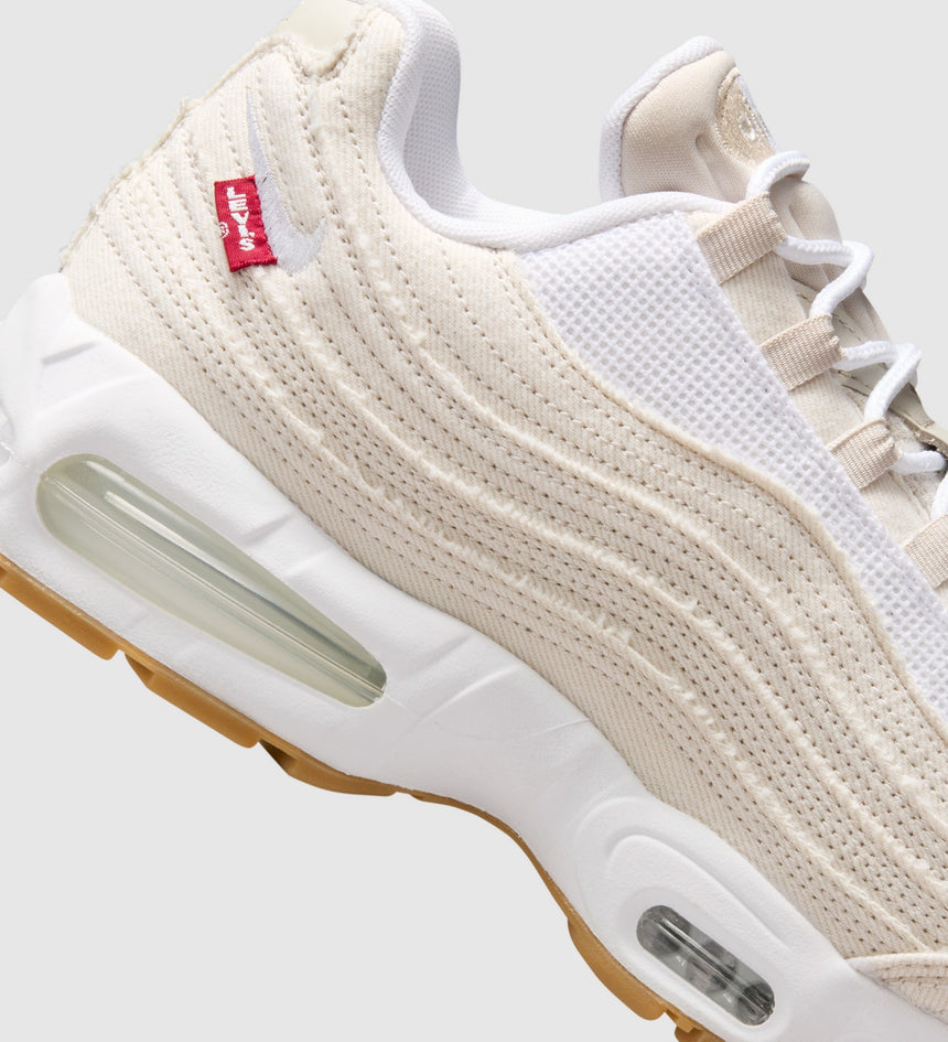These limited-edition Nike Air Max 95 Sneakers pair low-key hues of Ecru denim and matte white with a gum sole for a neutral look. We also added exclusive details like our iconic red tab under the Nike swoosh and red Levi's® branding on the shank.